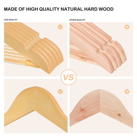 Wood is one of the most durable natural materials. Wood hangers can endure the weight of heavy winter clothing for an extended period of time. They aren't prone to snapping, warping, or twisting. Wooden hangers are also the only hangers that will not droop or bend over time. As a result, you won't have to change them as frequently as you would otherwise. Choosing durable wooden hangers for clothes serves as a stable basis for your clothes, allowing you to extend their wearability.
